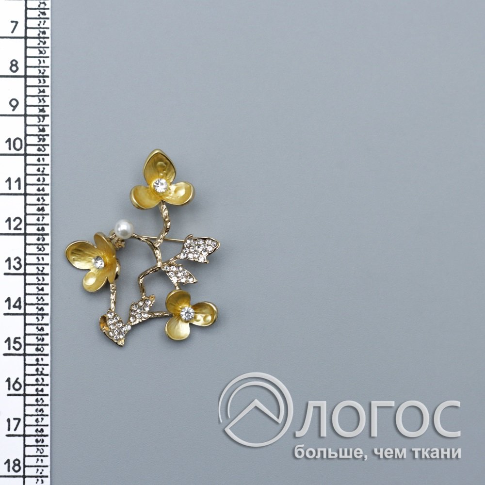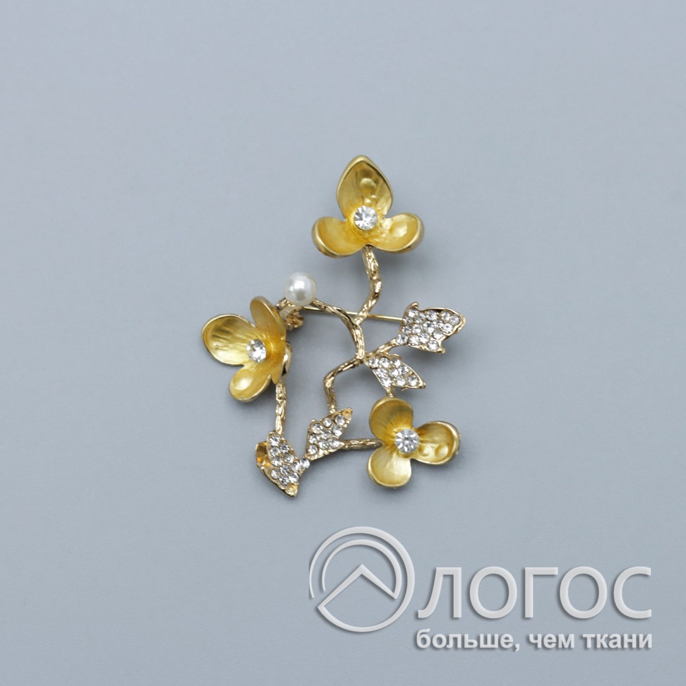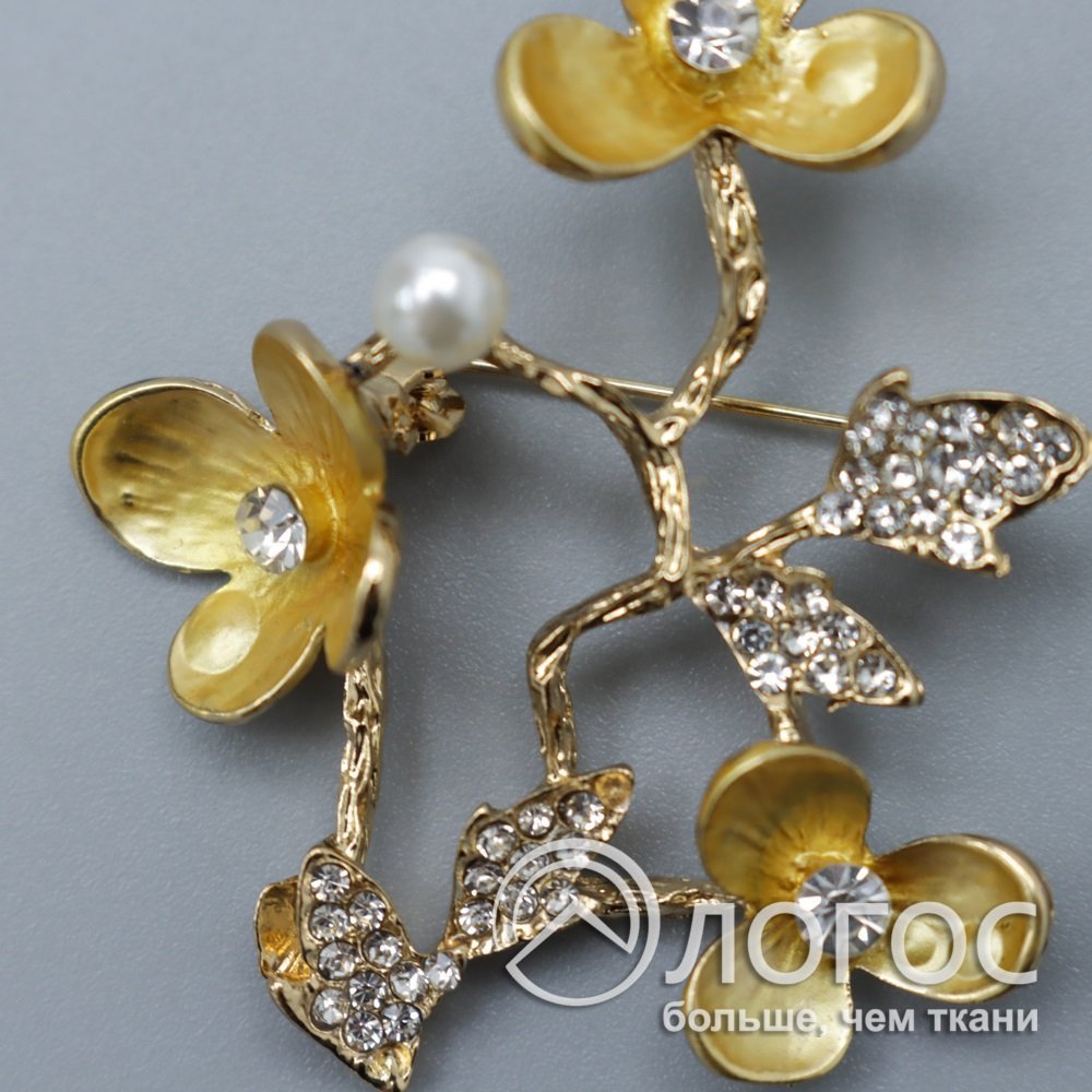 Брошь Ветка с цветами Б, золото